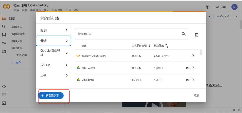 一開始可搜尋colab點擊進去。