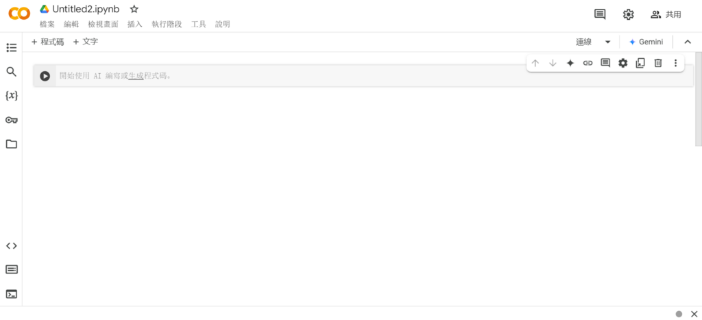 點擊完後,會出現新的筆記本可以在上面輸入程式碼。