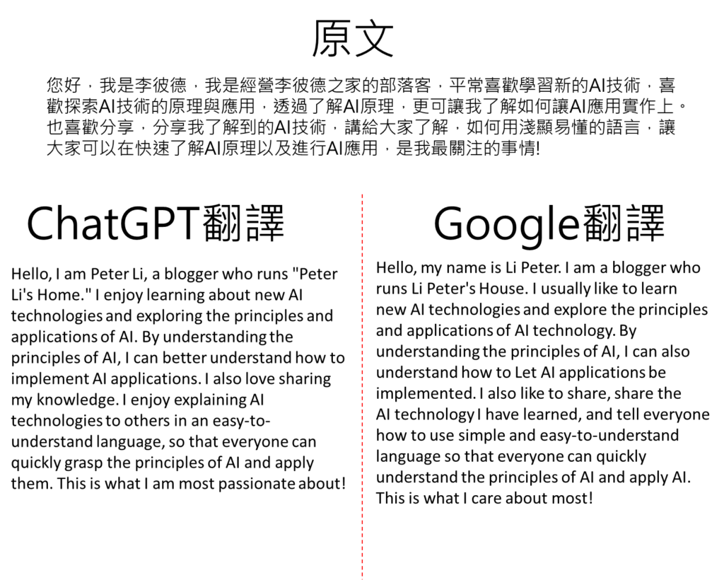 ChatGPT翻譯方式與Google翻譯方式之比較