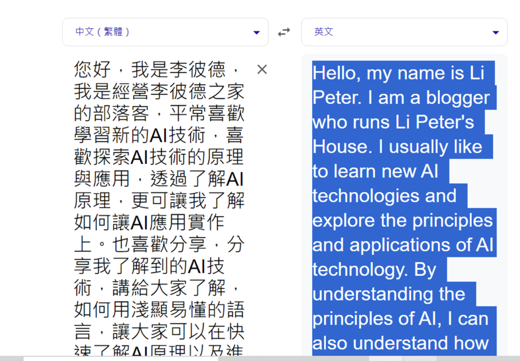 Hello, my name is Li Peter. I am a blogger who runs Li Peter’s House. I usually like to learn new AI technologies and explore the principles and applications of AI technology. By understanding the principles of AI, I can also understand how to Let AI applications be implemented. I also like to share, share the AI technology I have learned, and tell everyone how to use simple and easy-to-understand language so that everyone can quickly understand the principles of AI and apply AI. This is what I care about most!