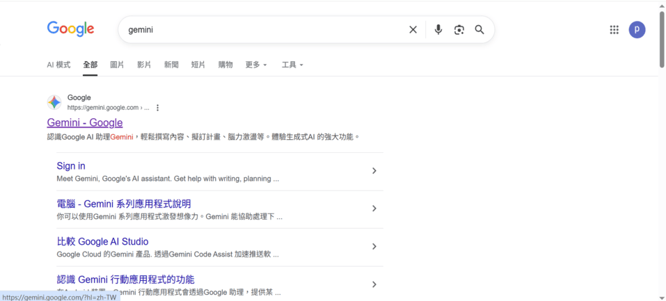 步驟1: 搜尋gemini,第一個結果就是。
